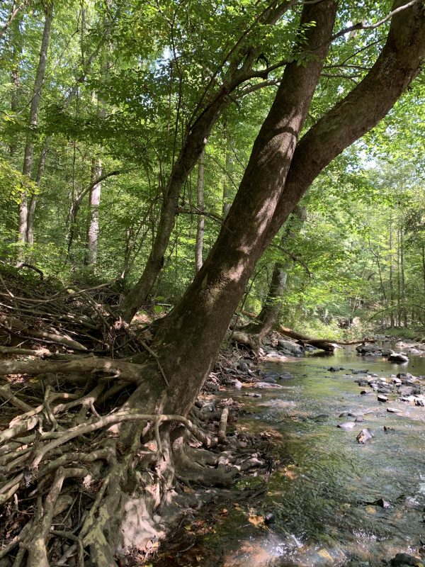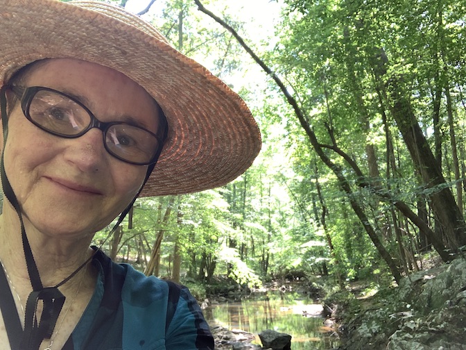 Top row, left to right: Maura at Bolin Creek, the mill race along Bolin Creek. Middle row: Woods on north side of Bolin Creek, millstone in Carrboro, crownbeard in bloom in old field on south side of Bolin Creek, Morgan Creek. Bottom row: waterlogged ground in the Martin Luther King Jr Park in Carrboro, tree stump in the clearcut north of Bolin Creek.